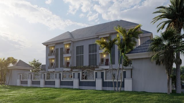 Specification Details Total Rooms 25 Ensuite Rooms Building Type Hospitality / Commercial Recommended Plot Size 2,000 – 2,500 sqm (minimum 100ft x 200ft) Number of Floors 2 – 3 Floors (configurable) Average Room Size 16 – 20 sqm Reception Area 45 sqm Restaurant / Dining 60 sqm Circulation / Corridor Width 1.5 – 2.0m Building Height 10 – 12 meters Design Style Contemporary / Modern Drawing Format PDF (AutoCAD available on request) Drawing Set Includes Floor Plans, Roof Plan, Elevations, Sections, 3D Renderings